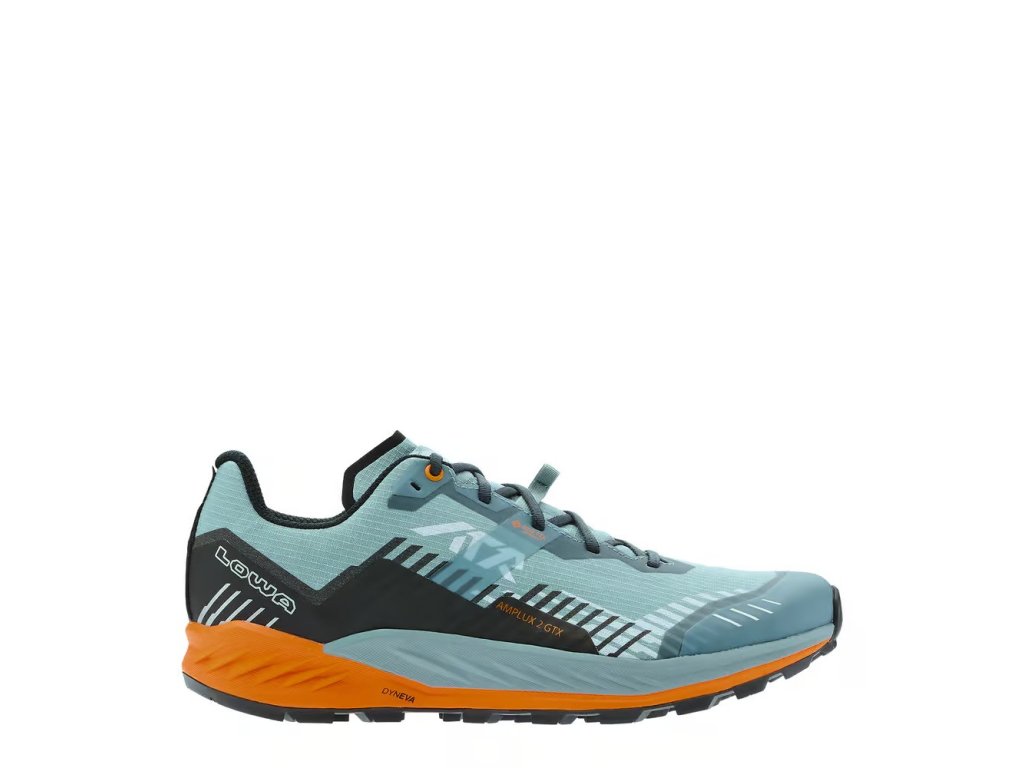Amlpux 2 GTX jsou trailové běžecké boty vycházející osvědčeného modelu AMPLUX. Inovace vycházela ze zkušeností sportovců z týmu LOWA TRAIL RACERS a posouvá AMPLUX na zcela novou úroveň. Mezipodešev LOWA® DYNEVA® je tvořena vrstvami materiálu EVA s různou tuhostí, karbonová výztuha a patní část mezipodešve byly optimalizovány tak, aby se zdokonalily tlumicí a valivé vlastnosti boty. Díky dokonalému poměru odpružení a náklonu vpřed je pohodlí a výkon boty v dokonalé rovnováze. AMPLUX 2 zaujme svým vyváženým chováním při běhu a všestranností, díky čemuž je ideální botou pro každodenní trénink. Nejlépe se budete cítit v technicky náročném vysokohorském terénu. Boty jsou vhodné i na Nordic Walking či vycházky do přírody. Voděodolná verze doplněná GTX membránou.