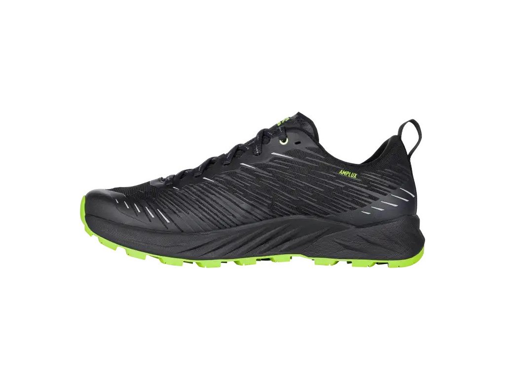 AMPLUX jsou trailové pánské běžecké boty pro špičkový výkon v každém terénu. Důvodem je jejich vyvážená konstrukce. Tento model spojuje všechny důležité vlastnosti potřebné pro zdolávání krátkých, středních i dlouhých vzdáleností. Bota váží pouhých 280 gramů. Má unikátní konstrukci podešve s odpružením trojí tuhosti. Drop 6 mm zajišťuje dlouhotrvající maximální pohodlí jak při tréninku, tak při závodech. Žádná jiná disciplína nemá tak pestrou škálu povrchů jako trail running v horách, a AMPLUX si poradí se vším. Zabudovaná karbonová výztuha minimalizuje ztráty energie a zabraňuje pronikání ostrých předmětů do boty. Díky mírně natočeným výstupkům se přilnavá podešev skutečně zakousne do země, aby poskytla potřebnou přilnavost. . Odolnost textilního svršku zajišťuje PU zátěr REPTEX SPORT. O pohodlí při dlouhém běhu se stará polstrování v oblasti límce a paty.