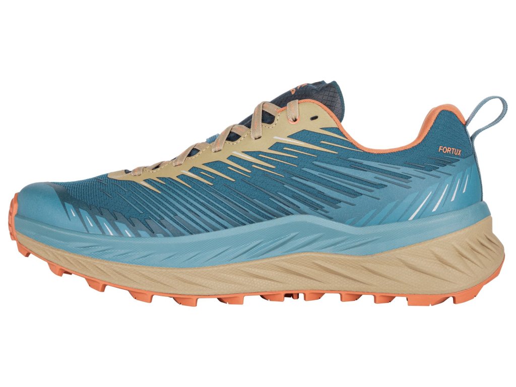 FORTUX jsou trailové běžecké boty na delší tratě. Tento model je díky svému odpružení, promyšlenému polstrování svršku a vysokému komfortu nošení skutečně předurčen hlavně na dlouhé tratě. Maximální pohodlí v kombinaci s minimální hmotností je zásadní. Speciální systém podešve LOWA TRAC C má mezipodešev s vysokým tlumením po celé délce, její ohyb šetří námahu při odvalování, bezešvý svršek eliminuje otlaky a zátěr REPTEX SPORT výrazně minimalizuje opotřebení svršku.