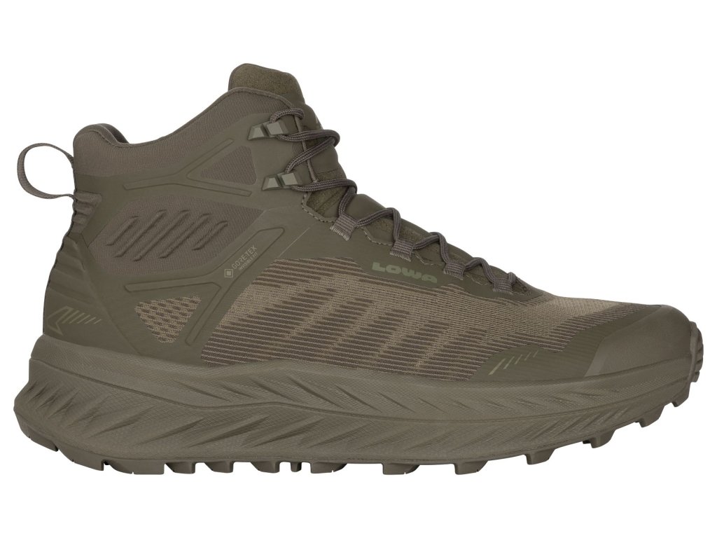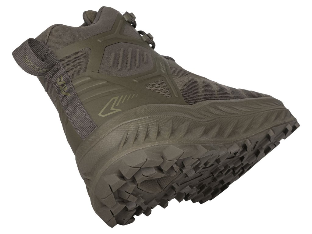 FORTUX GTX QC je trailová obuv navržená pro náročné dlouhé vzdálenosti – ať už se jedná o běh na špičkové úrovni nebo dynamickou turistiku. Díky své čtvrtinové výšce také nabízí optimální podporu kotníku, a přitom zůstává lehká. Speciální konstrukce svršku se odráží také v jeho stále robustnější povrchové úpravě: textilní svršek s žakárovou vazbou zaručuje spolehlivý výkon a dlouhou životnost díky vysoké odolnosti proti oděru. Charakteristická mezipodešev LOWA® DYNEVA s rockerovým tvarem, 6 mm dropem a vysokou odrazovou kapacitou poskytuje vynikající úroveň odpružení. Osvědčená pryžová podešev LOWA® TRAC® ULTRA je charakteristická svým obousměrným designem výstupků a umožňuje rychlé, tak i citlivé zrychlení i zpomalení. Díky tomu je bota vhodná nejen pro ambiciózní trialové běžce, ale i pro všechny, kteří chtějí být v horách obecně o něco dynamičtější. Ranger green barevné provedení posouvá model mezi lehkou služební obuv.